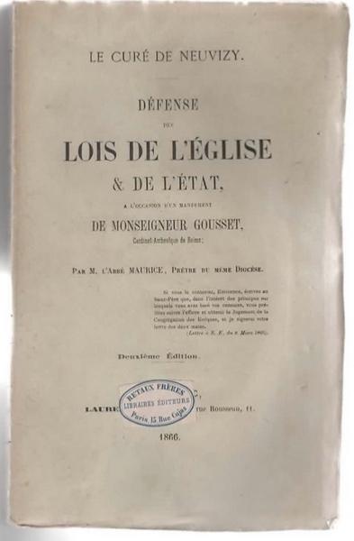 Défense des lois de l'église et de l'état à l'occasion d'un mandement de Monseigneur Gousset Cardinal Archevêque de Reims