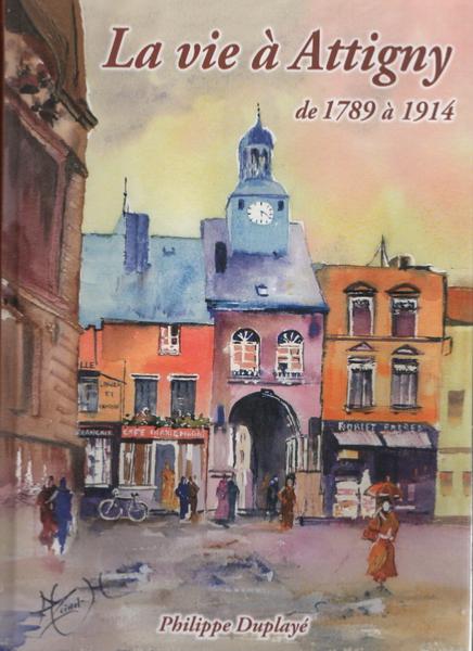 Pourquoi le bourg d’Attigny inspire-t-il les chercheurs ? Quatre auteurs se sont penchés sur son riche passé. On pense donc tout savoir. C’est sans compter sur Philippe Duplayé. Cet instituteur, né en 1947, arrivé à Attigny en 1970, recherche pendant plus de 30 ans les différents visages de son bourg d’adoption. C’est devant des cartes postales d’avant 1914 qu’il prend conscience de tout ce monde qui risque d’être perdu. Il lit, consulte, fouille, photographie, achète, voyage, questionne, correspond … Il rassemble ainsi un maximum de renseignements qu’il veut sauver de l’oubli. Le tout devient un très bel ouvrage de 600 pages, enrichi d’une abondante iconographie, La vie à Attigny de 1789 à 1914.